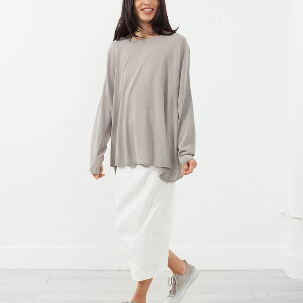 The Fitted Skirt offers a slim fit with slightly gathered details. Elastic waistband for ease. Rundholz. Color Sahne. 64% Linen, 35% Viscose, 1% Elastane. Made in Germany. Ashley is wearing an X-Small.