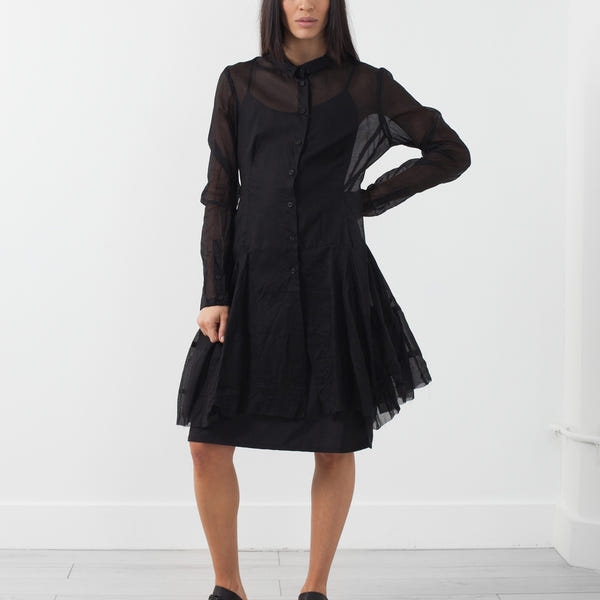 Made in Germany, The Rundholz Mainline is the original creative expression of designers Carsten and Lenka Rundholz. The Button Up Dress offers an A-line silhouette in the shirtdress form. Detailed paneling at skirt add volume. Button placket closure at front. Color Black. 100% Cotton. Made in Germany. Ashley is wearing an X-Small.