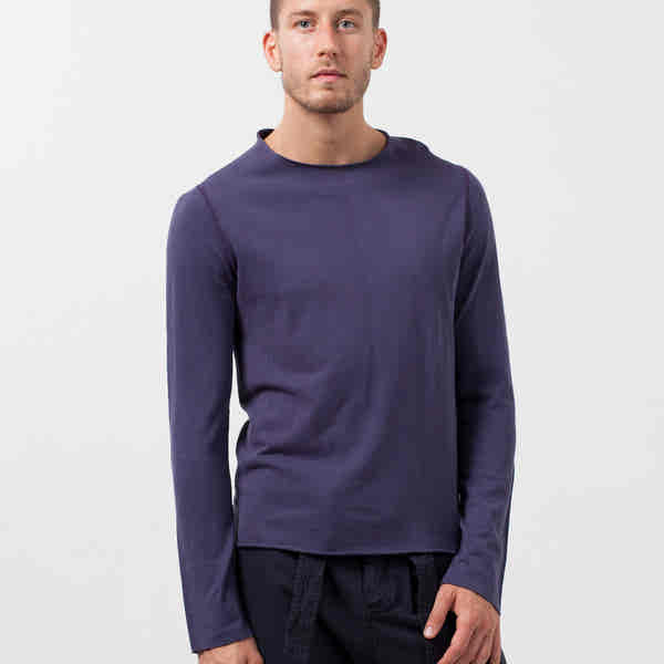 The Argon Sweater by Hannes Roether offers a lightweight, layer able piece for spring. Raw hems. Soft standup collar. Color Deep. 100% Cotton. Made in Portugal. Matt wears a Medium. Matt is 6’2”, Chest 38”, Waist 31”, Inseam 34.5”.