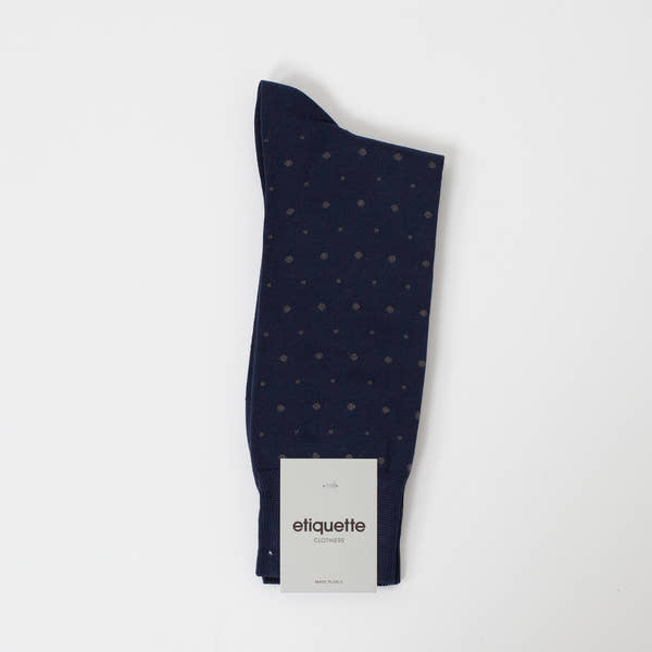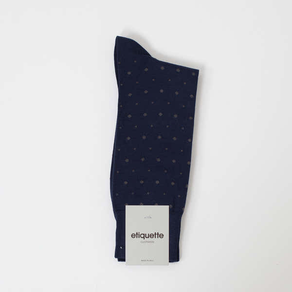 Our new collection of Italy made socks by Etiquette adds some gentlemanly flavor to our men's line. Focused on impeccable craftsmanship, using the highest quality materials, and timeless sophistication that’s fashionable, but always wearable. Color Blue Dot. 100% Cotton. Made in Italy. One Size.