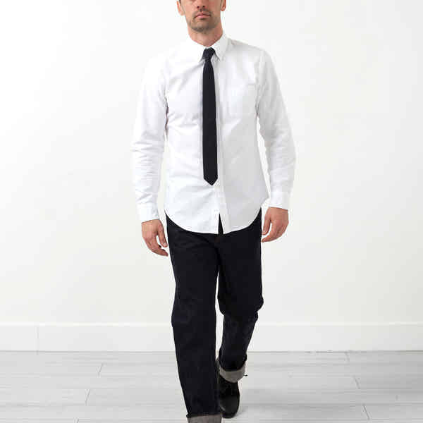 The Basic Button Up by Lardini is a staple piece for the modern wardrobe. Button placket closure at front. Breast pocket at left front. Pleat at center back. Color White. 100% Cotton. Made in Romania. Jacob is wearing a 42.