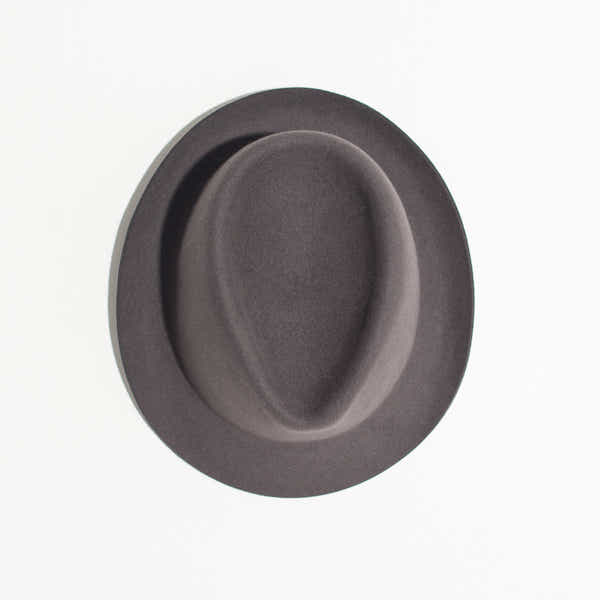 Internationally acclaimed hat designer, Fiona Bennett, offers superior-made headwear of fur felt and Alpaca wool through her new label, Kiss by Fiona Bennett. Sleek, classic, and comfortable, her pieces are crafted to age well while offering relevant statements. The Charles Hat gives the Fedora a run for its' money. Color Steel. 100% Fur Felt. Made in Berlin.
