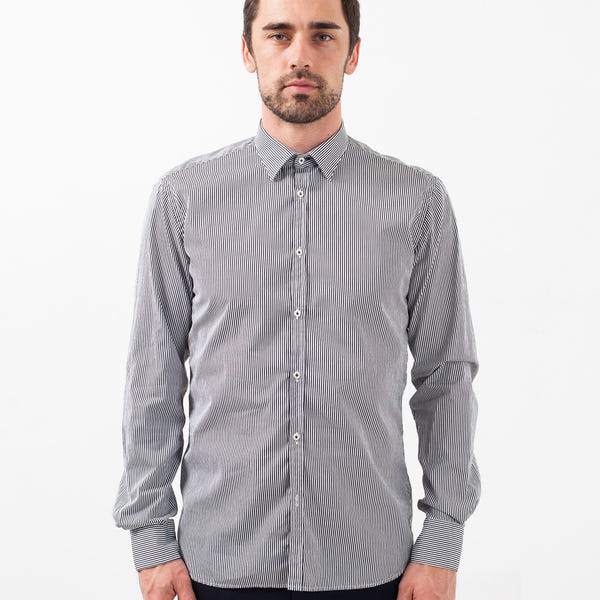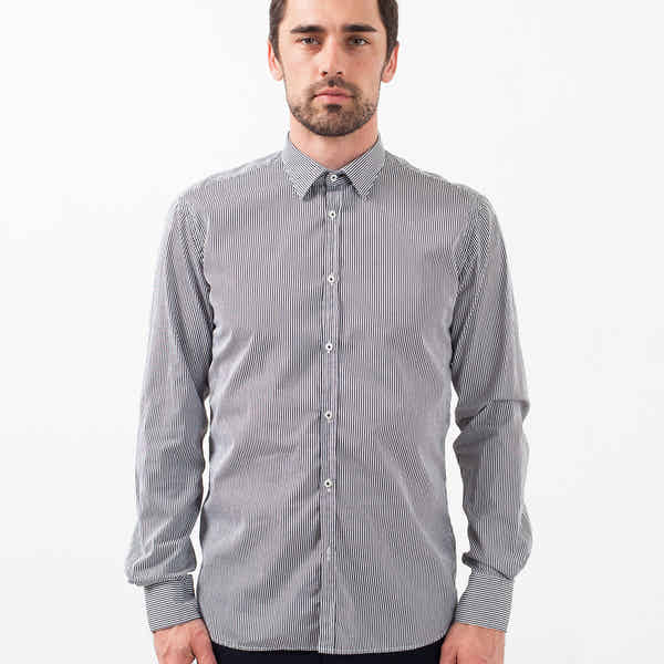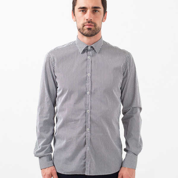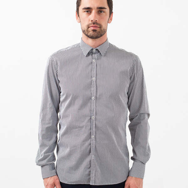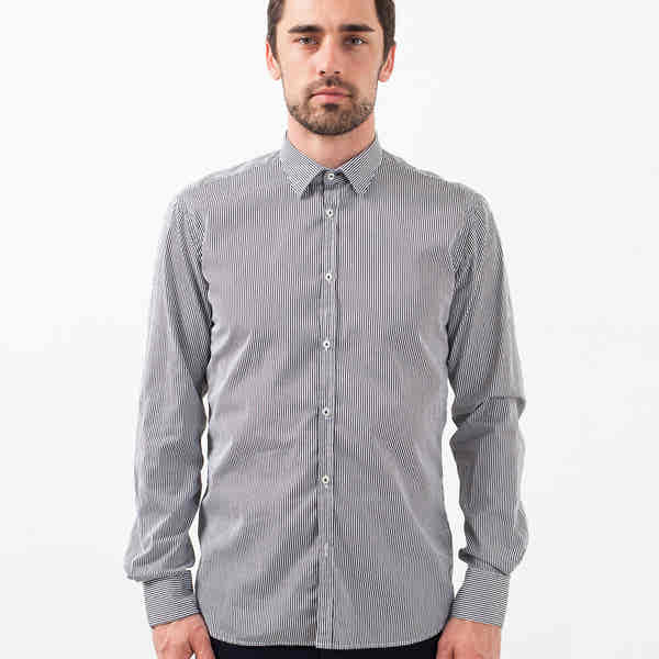 Created from the vast experience of its 41 founding members, this shirt delivers beautiful Italian tailoring and high quality fabrics and trims. The classic button down has back darts for a more tailored fit. Color Black. 100% Cotton. Made in Italy. Jacob is wearing a Size 41.