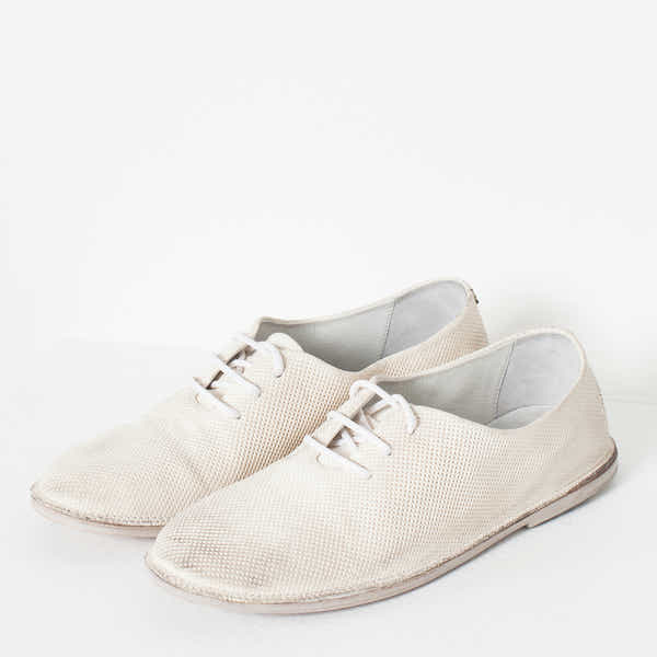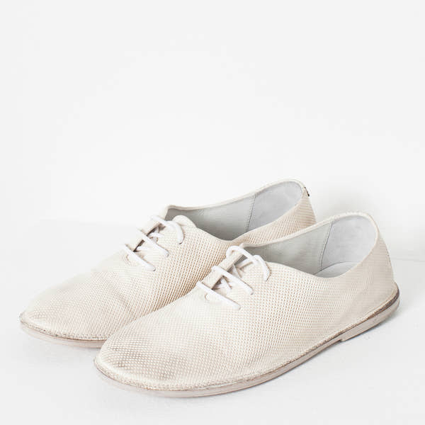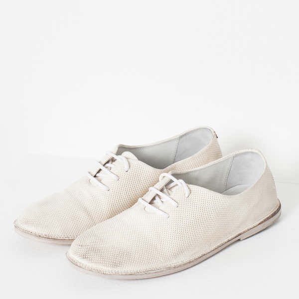 Married aesthetics of innovation and tradition, Marséll crafts shoes of mastering technique. Where modern classism takes wearable shape, anticipate artistic expression epitomized in leather footwear. The Diamond Slip-On is ideal for the active spirit with a errands, tours, and museum meanderings. Comes with removable ties for optimum versatility. Color White. 100% Leather. Made in Italy.
