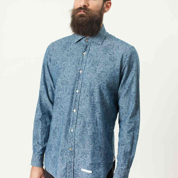 A hybrid of traditional Scottish fiber preparations and Italian construction is the Drumohr label. Floral print button-down tailored shirt with all the trimmings. Built to last, and impress. Color Blue. 100% Cotton. Made in Italy. Addis is wearing a size 40. Addis is 6’2”, Chest 38.5”, Waist 31”, Inseam 32”.