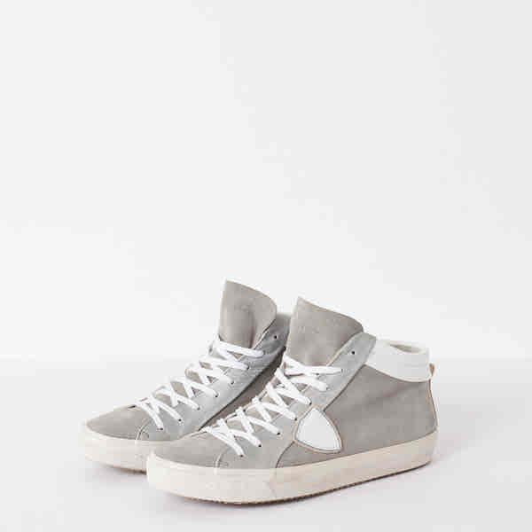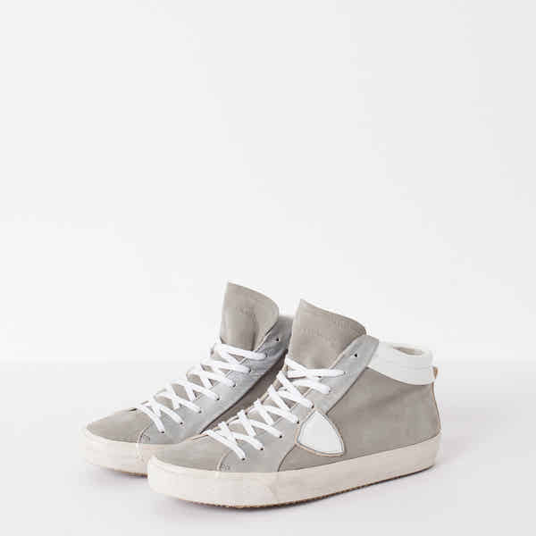 Looking for some casual sneaks for any day, any occasion wear? Philippe Model is your choice designer. Each shoe is handmade with washed leathers, the soles manually assembled, and leathers brushed, making every pair distinctive and imprinted with the craft of each shoemaker. Pair your evening wear with a Model sneaker for some spunk. Color Grey/White. Upper 100% Calf Leather, Sole 100% Rubber, Lining 100% Cotton. Made in Italy.