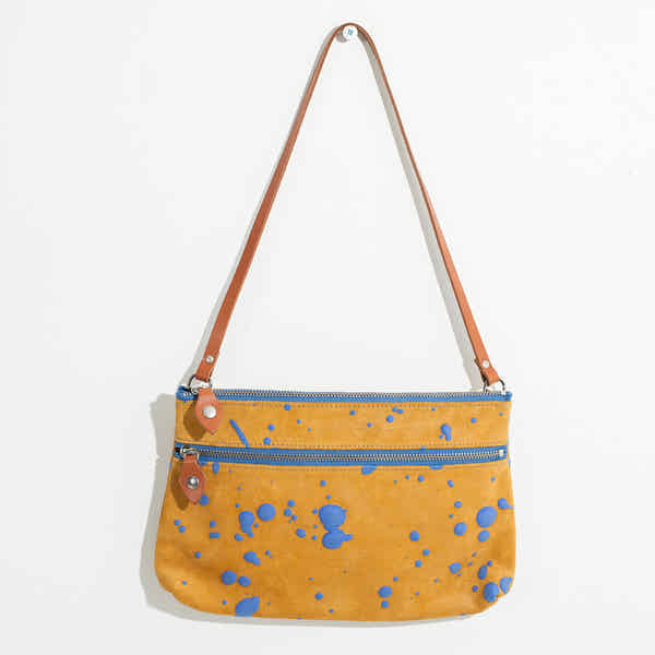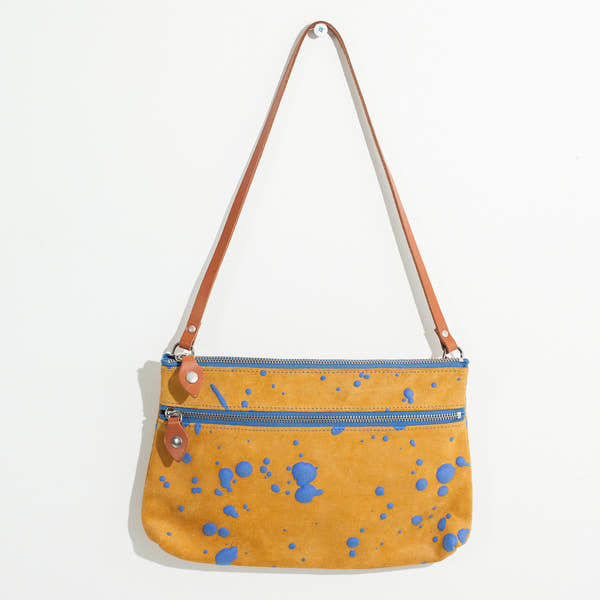 Ink Splatter Shoulder Bag in Mustard/Blue