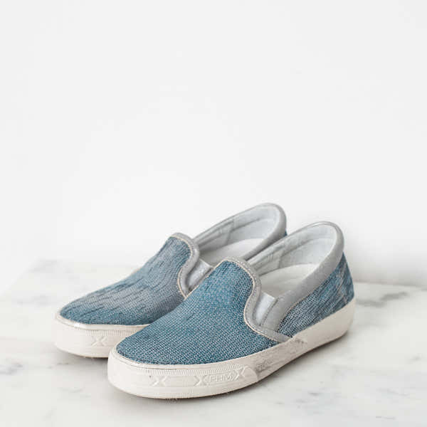 Looking for some casual sneaks for any day, any occasion wear? Philippe Model is your choice designer. Each shoe is handmade with washed leathers, the soles manually assembled, and leathers brushed, making every pair distinctive and imprinted with the craft of each shoemaker. The Las Vegas Slip On adds some sparkle to your everyday. Sequins throughout. Color Blue. Upper 100% Calf Leather, Sole 100% Rubber, Lining 100% Cotton. Made in Italy.