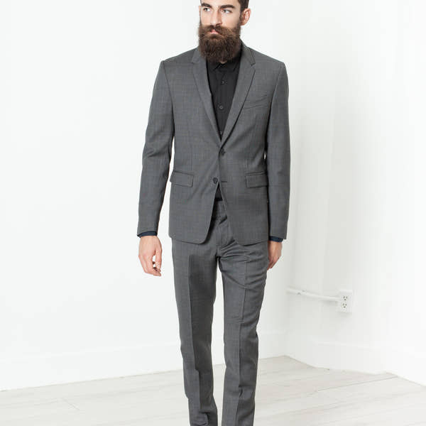 The Completo Suit is an impeccably tailored two-button suit that lacks unnecessary extras with a modern slim fit. These smart wool pants offer side seam and back welt pockets with three button, hook and bar closure. The unfinished pant hem is ready for cuffs or a simple turn up. Mauro Grifoni. Color Grey. 100% Wool. Made in Italy. Addis is wearing an Italian 48/50. Addis is 6’2”, Chest 38.5”, Waist 31”, Inseam 32”.
