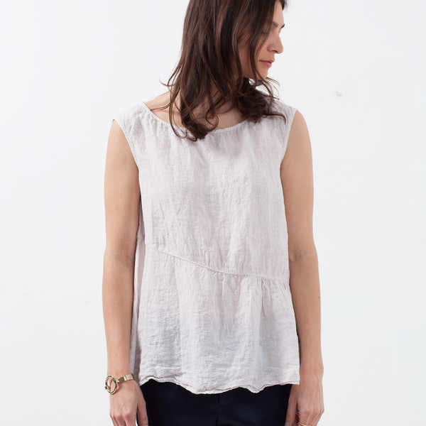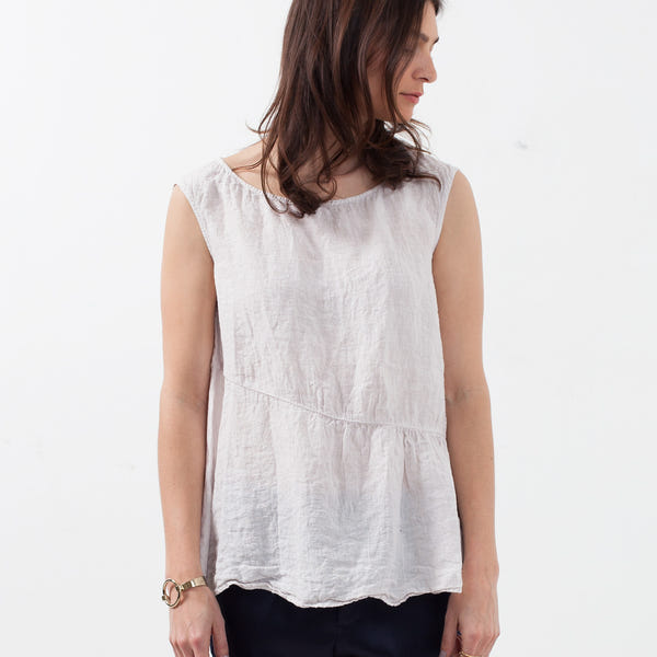 Manuelle Guibal's 2015 Summer collection embodies beach chic with intentional wrinkling and softened linen. The Eri Dress offers an oversized and comfortable silhouette. Wide, boat neckline. 100% Linen. Made in France. Lana is wearing a Size 1.