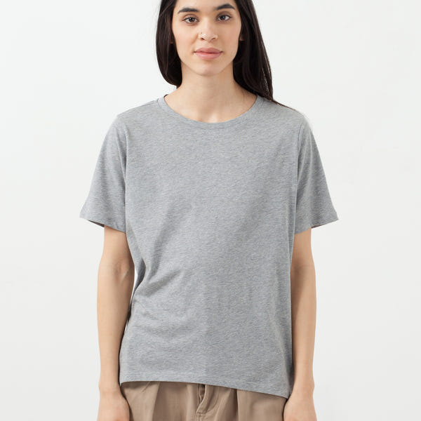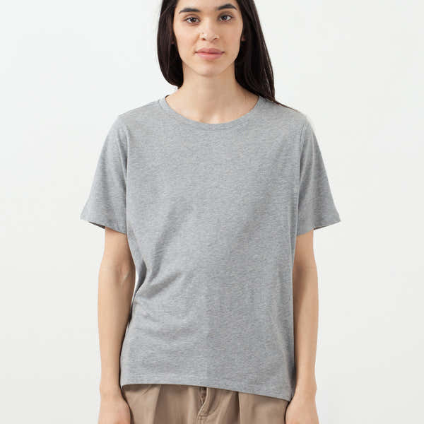The Oversized Tee offers a slightly oversized fit for polished ease. Boat neckline. Flowing sleeves. Sibel Saral. Color Grey. 100% Cotton. Made in Turkey. Ashley is wearing an X-Small.
