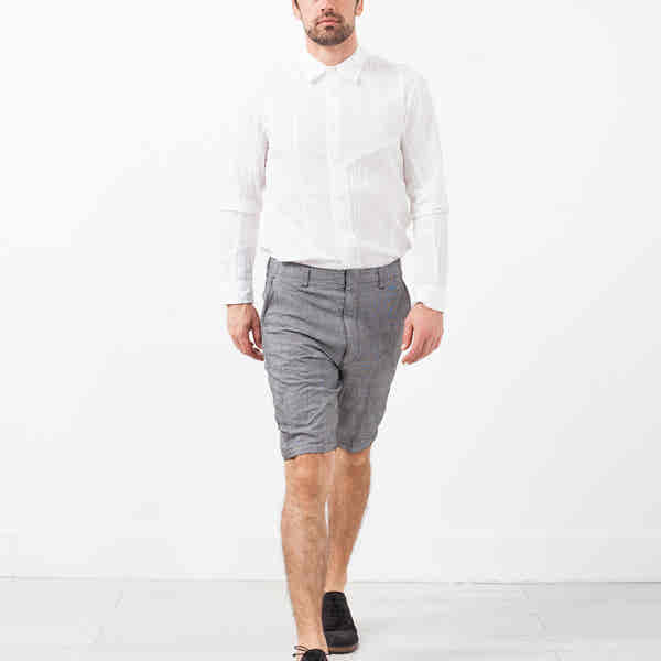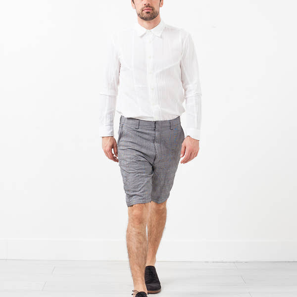 The Check Short from Sage de Cret offers an engaging texture with comfort stretch. Hook and eye closure with zip fly. Four exterior pockets. Lining. Color Black/White. 56% Wool, 44% Polyester, Lining 100% Polyester. Made in Japan. Jacob is wearing a Medium.