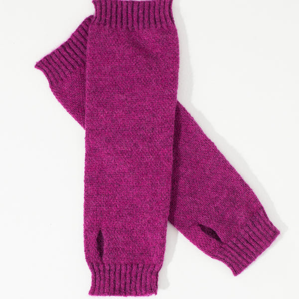 Stay warm while still turning pages in these fingerless mittens with ribbed cuffs and thumbholes. Colors that make sure they aren't lost in the snow. Lilith. Color Fuchsia. 35% Mohair, 35% Alpaca. One Size.
