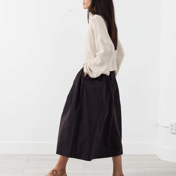 This whimsical piece is a full-length, full skirted beauty. Take her for a spin. Jesse Kamm. Color Black. 60% Cotton, 40% Polyester. Made in U.S.A. Ashley is wearing an X-Small.