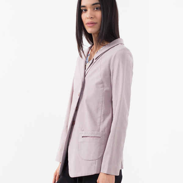 Pretty in pink, the Resine Jacket presents a sophisticated look through tailoring. Button placket closure at front. Double layered lapel. Pocket at left front. Lined. Lilith. Color Garnet. 97% Cotton, 3% Spandex, Lining 100%. Ashley is wearing an X-Small.