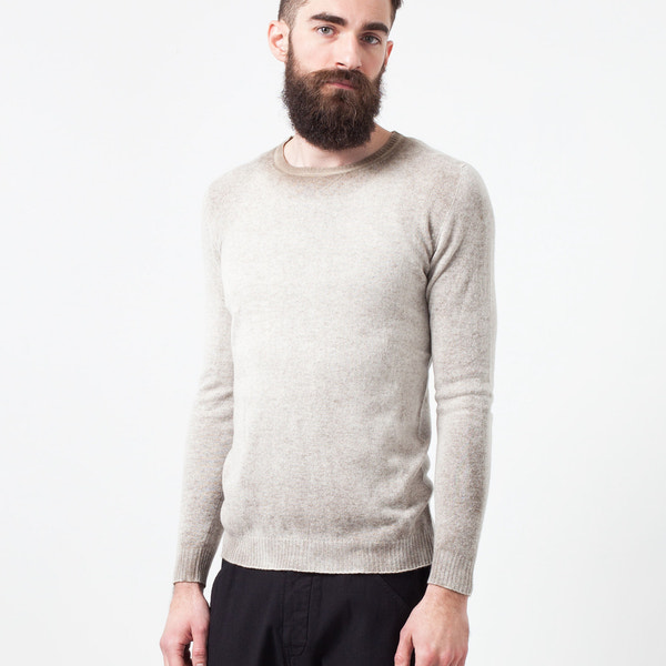 Who says spring is sweater season? Here at BABY, we say: "yes." The Reversible Mesh Sweater by Avant Toi is lightweight for those inevitable climbing temps and a sturdy choice for layering. Color Rope. 100% Cashmere. Made in Italy. Addis is wearing a Medium.