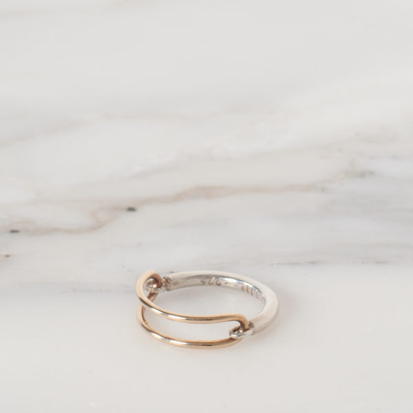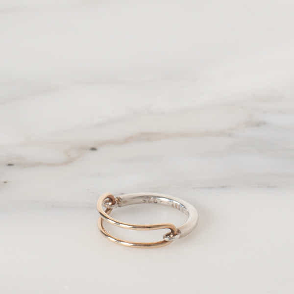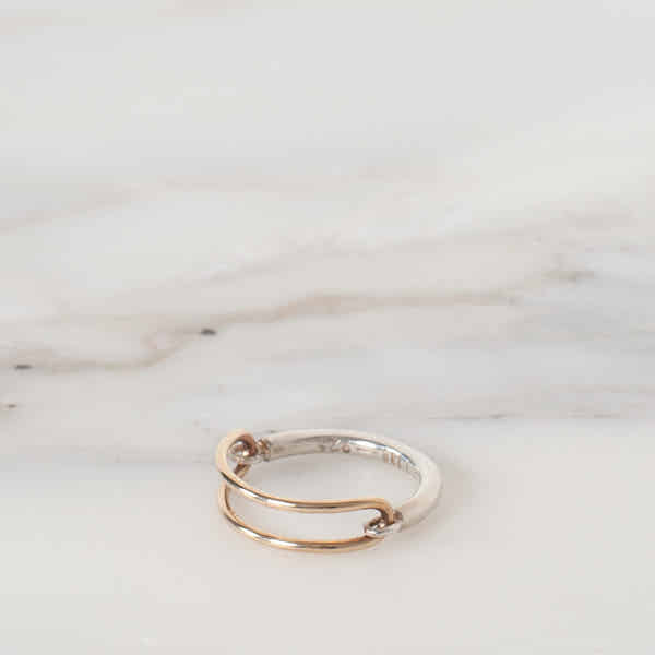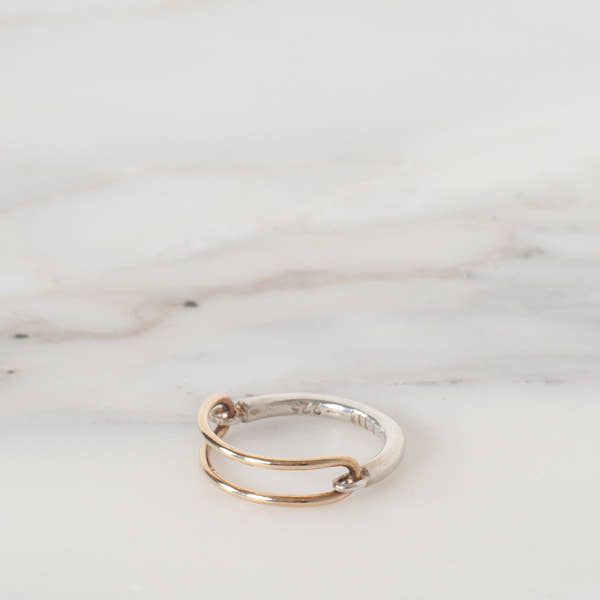 Rustic yet lovely, 1-100 jewelry gives an organic feel while maintaining an understated elegance. Unique hinge construction makes the Ring 76 a winning piece. Color Gold Multi.