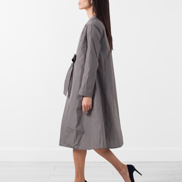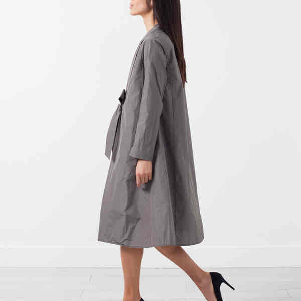This waterproof wonder is an elegant piece for rainy weather! Water resistant materials in a flattering silhouette, one can't really go wrong! Waist tie closure. Lilith. Color Charcoal. 100% Polyester. Ashley is wearing an X-Small.