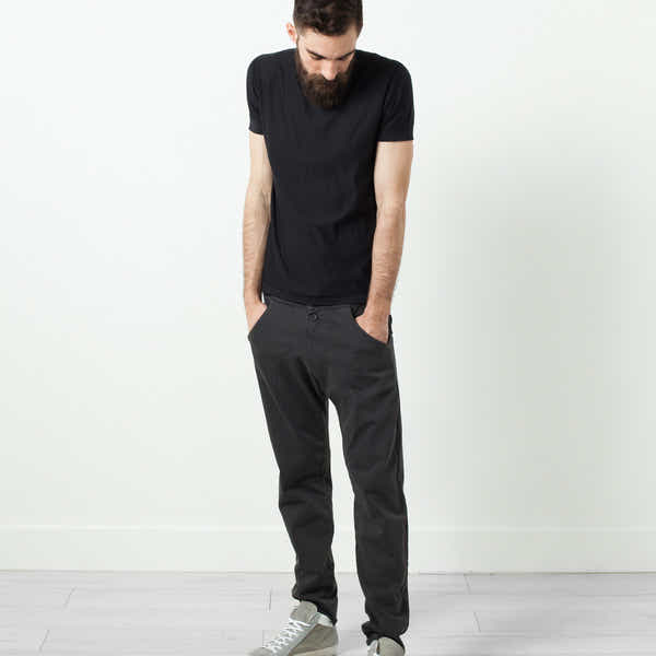 The Ruven Pant offers dimension to the classic black pant. Dynamically structured and instructionally sound, the secret to success is all in the details. Hannes Roether. Color Grey. 100% Cotton, 95% Cotton, 5% Elastane. Addis is wearing an X Small.