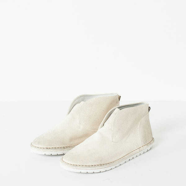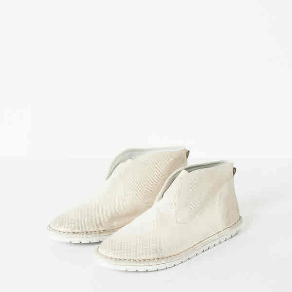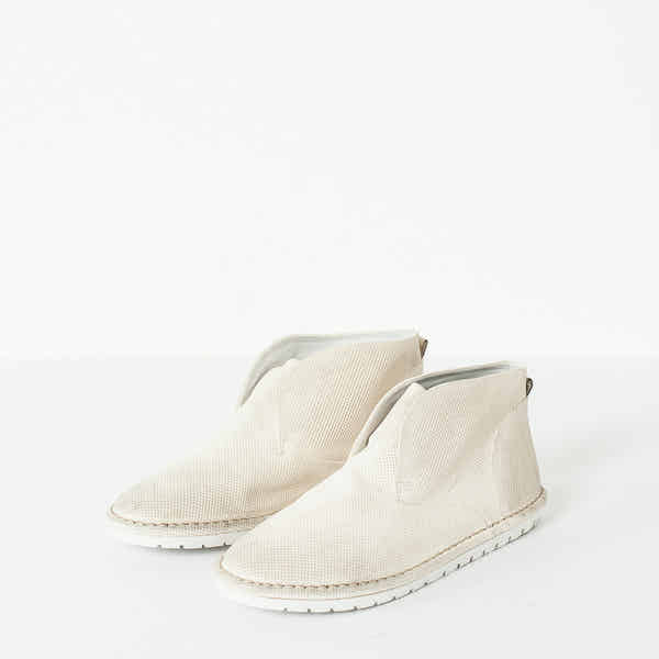 Married aesthetics of innovation and tradition, Marséll crafts shoes of mastering technique. Where modern classism takes wearable shape, anticipate artistic expression epitomized in leather footwear. The Sancrispa Sneaker invites an aha moment for luxury wear. The ease of this piece doesn't compensate for the elegance in look. Color White. 100% Leather. Made in Italy.