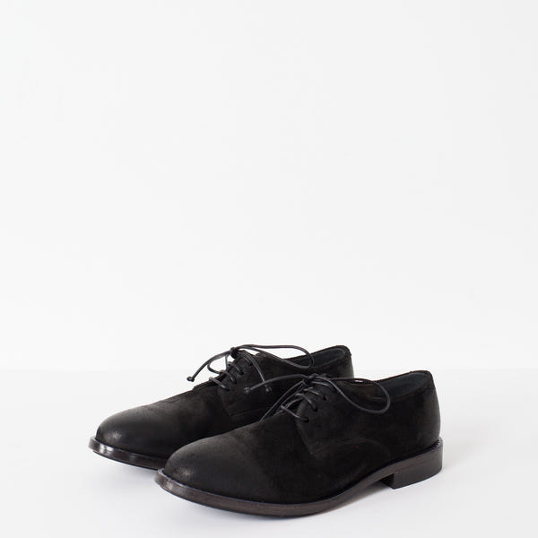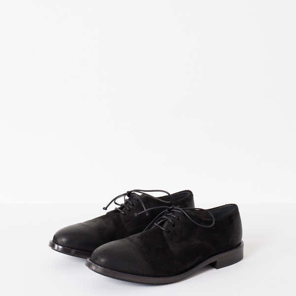 Marsèll's oxfords are a superb example of fine construction and simple design. The lace up design is reinvented with a distressed waxed suede finish. These versatile Italian made shoes will ensure long lasting comfort and cool through the seasons. Color Black. 100% Leather. Made in Italy.