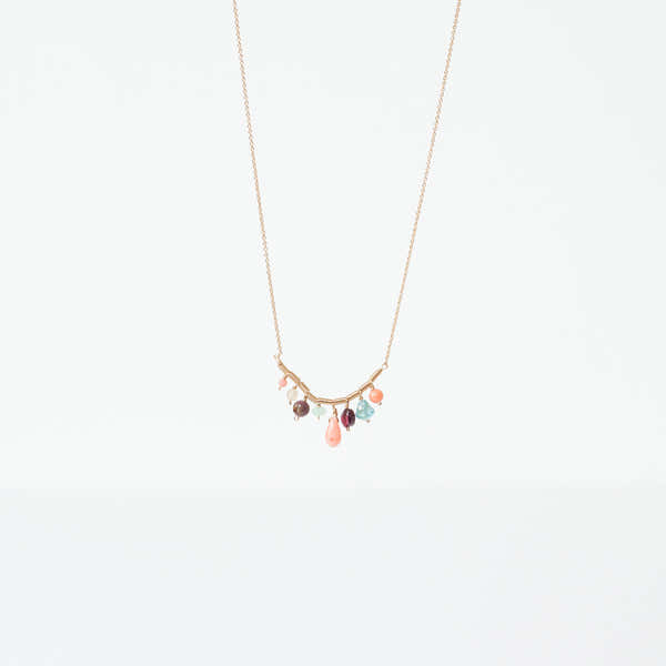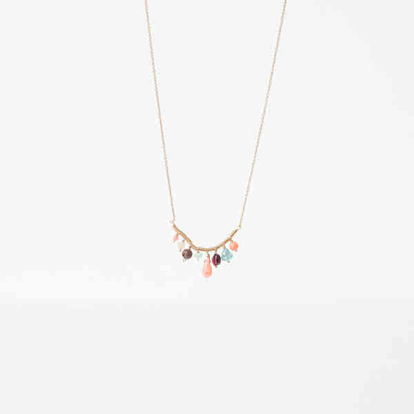 Quintessential elegance with delicate details. Simplistic in look while charming in its stone arrangement. Clasp closure. 5 Octobre. Color Pink. Made in France.
