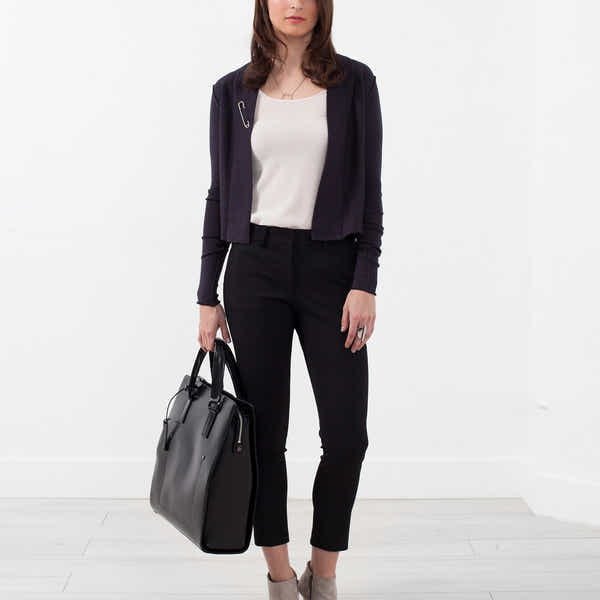 The Cropped Shawl Cardigan from Lars Andersson is a cozy spring selection with simple caresses of silk. Color Shale. 50% Silk, 35% Cotton, 15% Linen. Made in Nepal. Lana is wearing a Small.