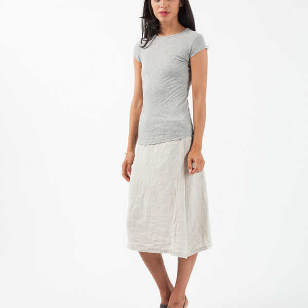 The Fitted Tee from Organic by John Patrick is your perfect summer go-to. This slim fitting piece is lightweight and durable. Capped Sleeves. Crew neckline. 100% Organic Cotton. Made in Peru. Ashley is wearing an X-Small.