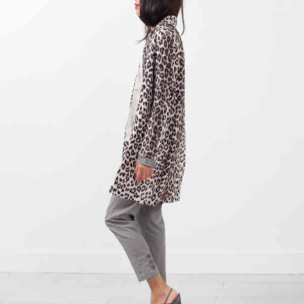At Baby & Company, we say leopard print is a neutral. The Silk Trench is that finishing touch for worthy of rivalry. Standing collar. Single button closure at front. Fully lined. La Prestic Ouiston. Color Leopard. 100% Silk. Made in Poland. Ashley is wearing a Size 1.