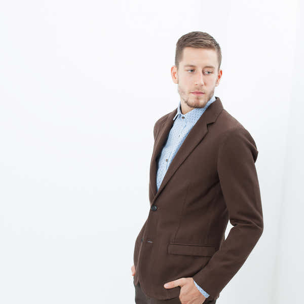 This Sport Jacket by Pence is tailored for the modern man in a classic two-button, notch-lapel cut that upholds sophisticated style. The front has two flap patch pockets, inner tech pockets and 4 buttoned cuffs. Back vented hem. Color Brown. 54% Cotton, 23% Wool, 23% Acrylic. Matt is wearing an Italian 50. Matt is 6’2”, Chest 38”, Waist 31”, Inseam 34.5”.