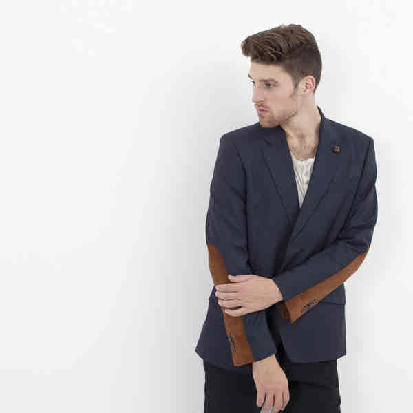 The Swift Low blazer from Circle Of Gentlemen is a perfect Fall layering piece. It combines the brands playful attention to detail, with a decorative lapel pin and pays homage to the 1960's with sueded patched elbows. The sophisticated fit bears two flap pockets and a back double vented hem. Multiple tech pockets line the inside. Color Navy. 100% Virgin Wool, 100% Viscose. Spencer is wearing an Italian 52.