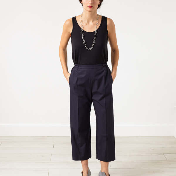 Wide Cropped Trouser in Navy