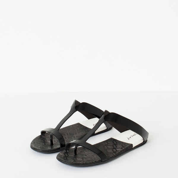 Married aesthetics of innovation and tradition, Marséll crafts shoes of mastering technique. Where modern classism takes wearable shape, anticipate artistic expression epitomized in leather footwear. The Zepella Sandal offers ease in fit and style with its smart straps for slipping on. Color Black. 100% Patent Leather. Made in Italy.